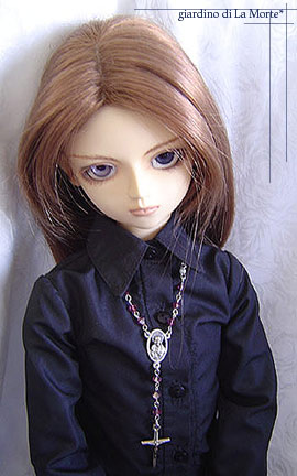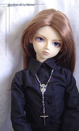 これも薔薇色のビーズを使っています。 スワロフスキーのローズサテン。 こういう紅色が似合ってしまうなんて、今更気付きました。 リボンタイのような赤は、お迎えして間もない頃に シャツにしめたりしたのですけれどね。