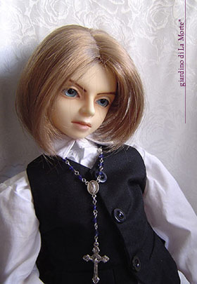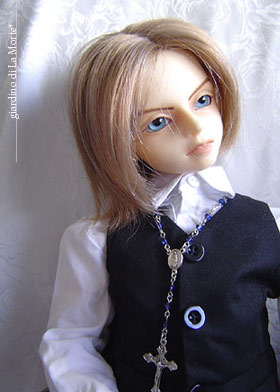 楸にすげかえてみました。 こちらは紫色のビーズのロザリオ。 |