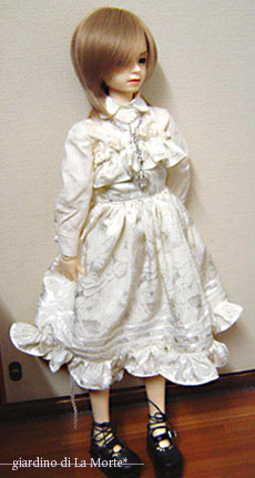 こんな感じの服です。 肩紐のリボンは付け替えできるようにしてあります。 |
