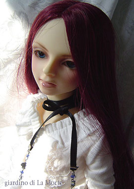 ワインレッドのウィッグに、ディープアクアの瞳。 |