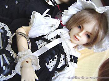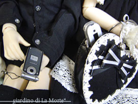 右(水城)がモバイルフィギュアコレクションで 左(朔月)が携帯進化論。超可愛い。 朔月の服は13少年用Yシャツに楸のショートパンツ。 靴下も楸の。ゆるゆるです(笑)