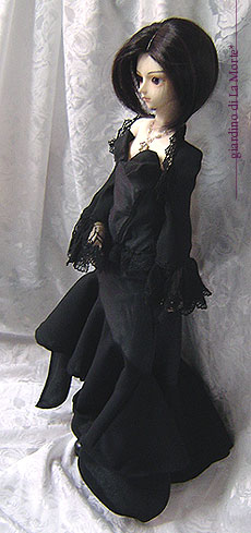 スカートの本体はビスチェの身頃と同じ バックサテンシャンタン。色は勿論黒。