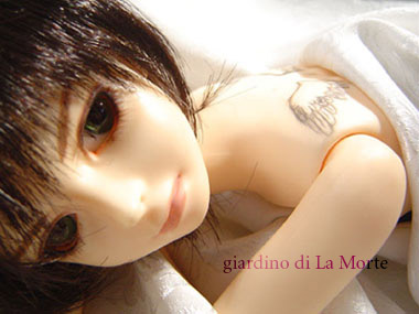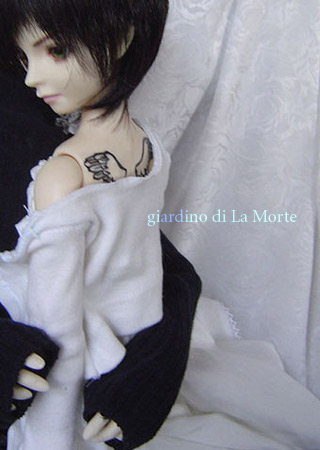 着せている服は灰架のために縫ったセットアップ。 はじめてのニット生地(カットソー地)を扱ったもの。 カーディガン的にスナップ前で着せたりもしています。スカートは梨地系。