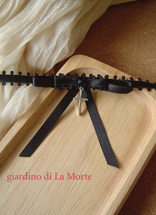 ・十字架リボンタイ サテンリボンとピコットリボンを重ねたリボンに |