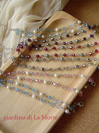・ロザリオ風ネックレス クリスタライズとパールを繋げた、 *アクアマリンオーロラのみ特殊カラーのため |