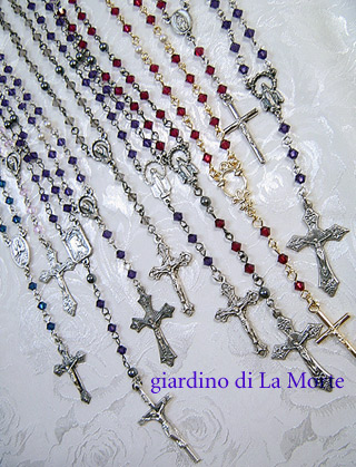 一点もの扱いの金ロザリオは ルビー×白パール。Mサイズ。 センターが大きいので、ロング相当のボリューム。