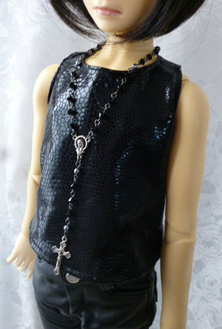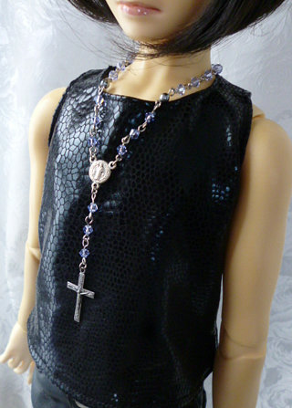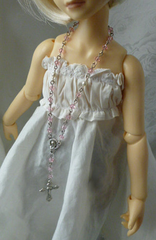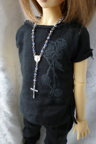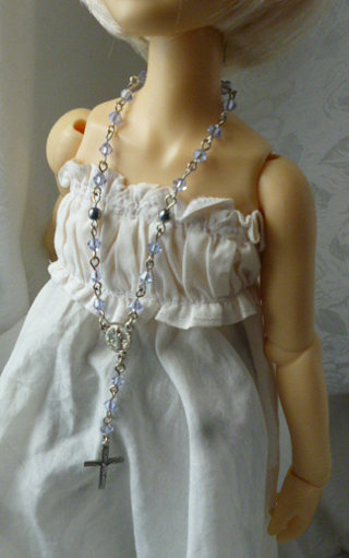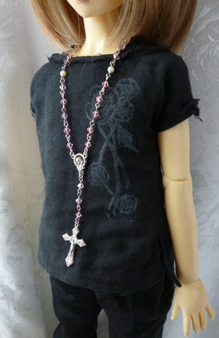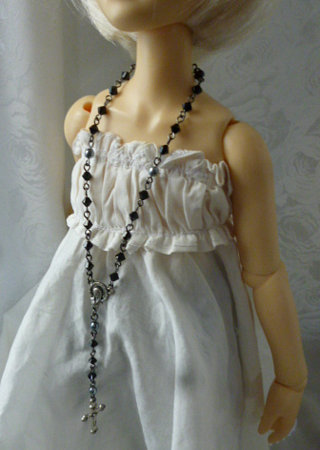 ファッション用のロザリオ風ネックレスをドールサイズにデフォルメした造り。